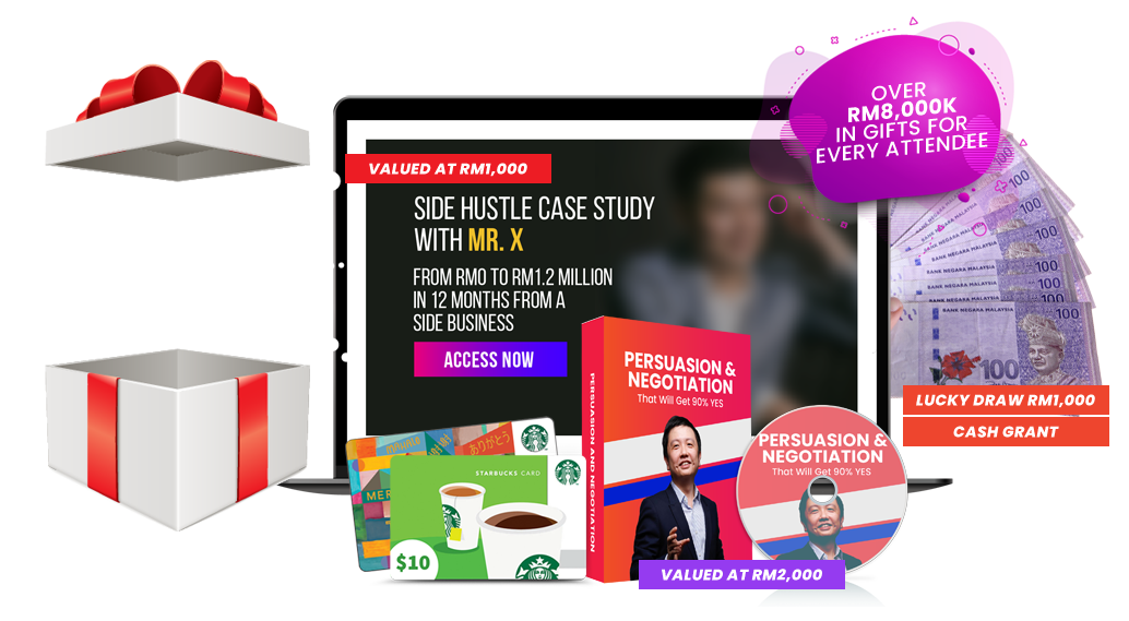 On top of all the strategies you’ll learn to make hundreds or even thousands in extra income every month, you’ll also get a bonus package worth over RM 8,000 just for signing up. Even if you don’t learn a thing, the bonuses are yours to keep. Remember, the webinar is absolutely no cost, so it’s like you’re getting RM 8,000 for free! Who wouldn’t take that deal?